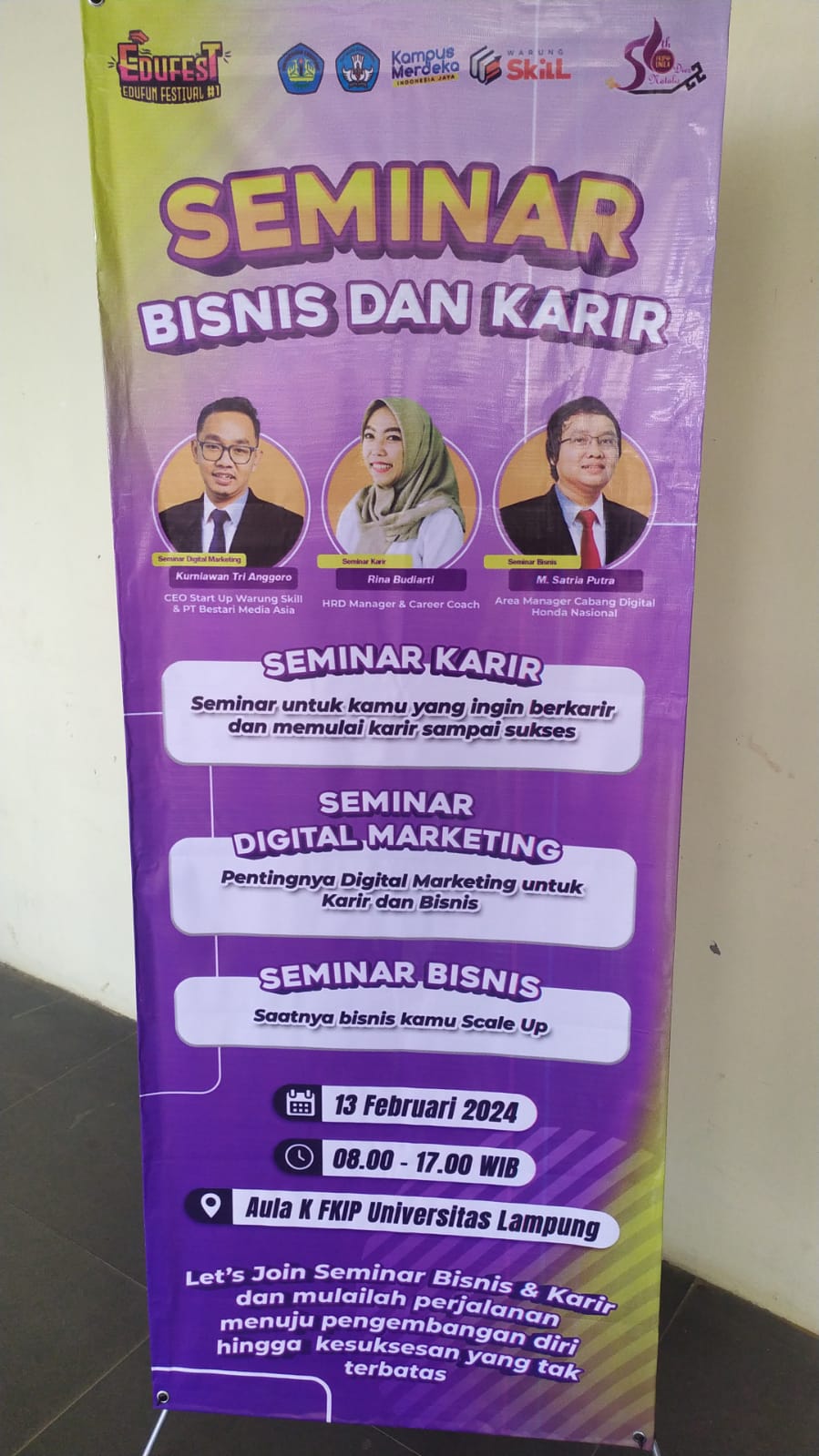 Kencana Media, Bandar Lampung –  13 Februari 2024 – Untuk Pertama kalinya Fakultas Keguruan dan Ilmu Pendidikan (FKIP) Universitas Lampung (Unila) menggelar Event Edufest (Edufun Festival) untuk Seminar Edukasi Bisnis dan Karir di Aula K FKIP Unila.