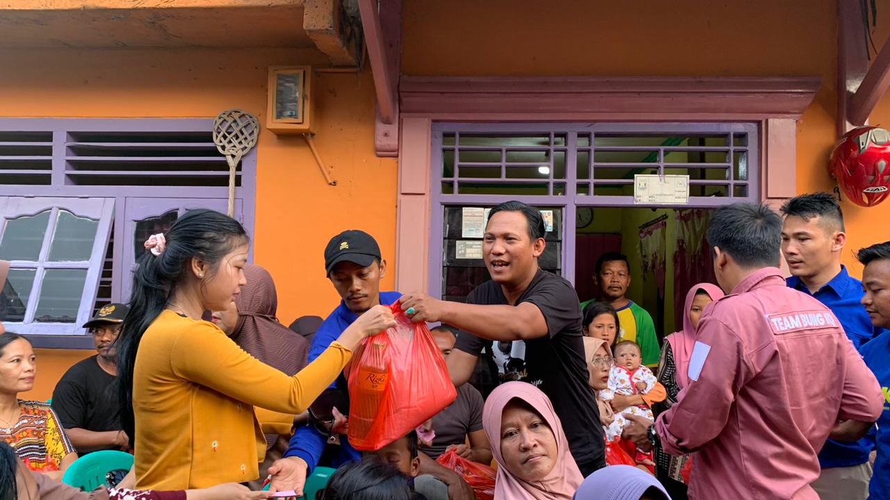 Puluhan warga antusias mengikuti Safari Ramadan sekaligus berbagi sembako berupa beras premium, gula dan minyak berlangsung di Jalan Slamet Riadi.