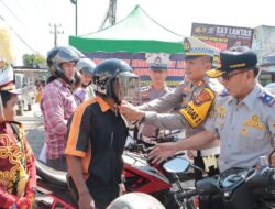 Lanjutnya, sebanyak 20 (dua) unit helm SNI yang kami bagikan secara gratis khusus kepada para pengendara yang tertib dan taat dalam berlalu lintas. Pembagian helm gratis ini menjadi salah satu upaya Kepolisian dalam mengedukasi masyarakat untuk menjaga keselamatan dalam berlalu lintas.