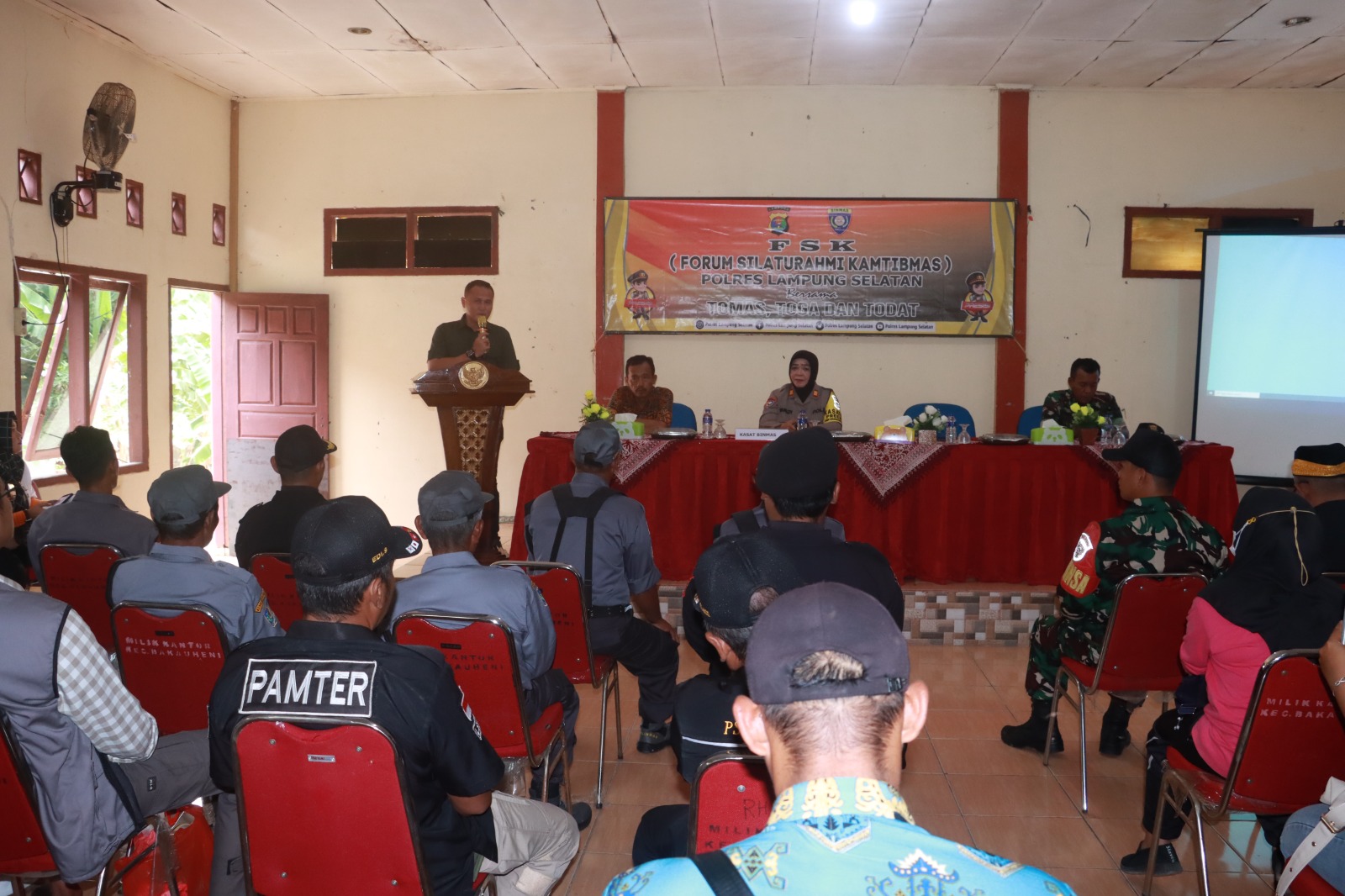 Kencanamedianews.com, Lampung Selatan – Polres Lampung Selatan menggelar Forum Silaturahmi Kamtibmas (FSK) di Aula Kantor Kecamatan Bakauheni pada Jumat, 4 Oktober 2024. Acara yang dimulai pukul 13.00 WIB ini dihadiri oleh berbagai pihak, termasuk tiga kepala desa se-Kecamatan Bakauheni, perwakilan dari Kodim 0421/LS, Koramil 0421-03/PNH, Bhabinkamtibmas Polsek Penengahan, tokoh masyarakat, tokoh agama, dan tokoh adat setempat. Selain itu, perwakilan PPK, Pokdarwis, Linmas, ormas seperti LAPBAS dan Laskar, serta PSHT juga turut hadir, bersama KPUD dan Panwascam Kecamatan Bakauheni.