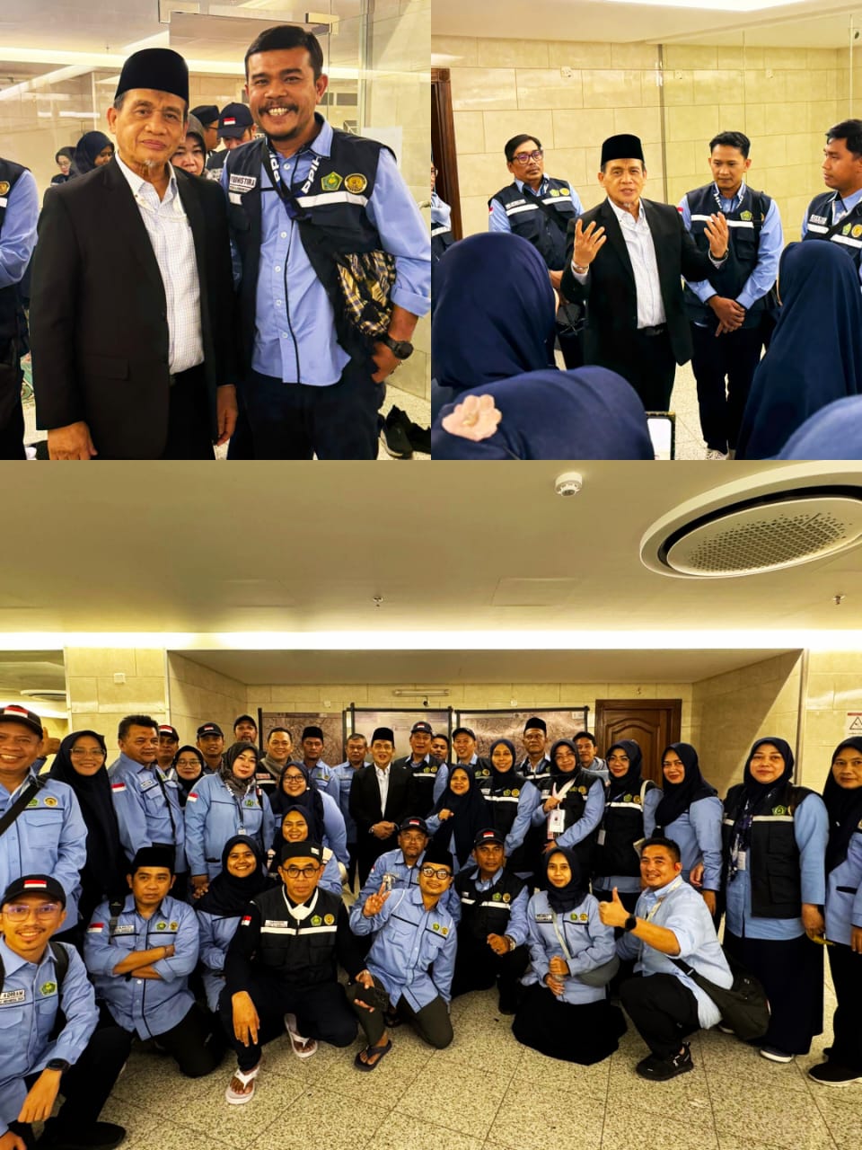 Wakil Menteri Agama (Wamenag) Romo HR Muhammad Syafi’i berkunjung ke Posko Sektor 6 Makkah di Jarwal, Makkah, untuk bersilaturahmi dengan seluruh petugas Panitia Penyelenggara Ibadah Haji (PPIH), Sabtu malam (31/5/2025) WAS.