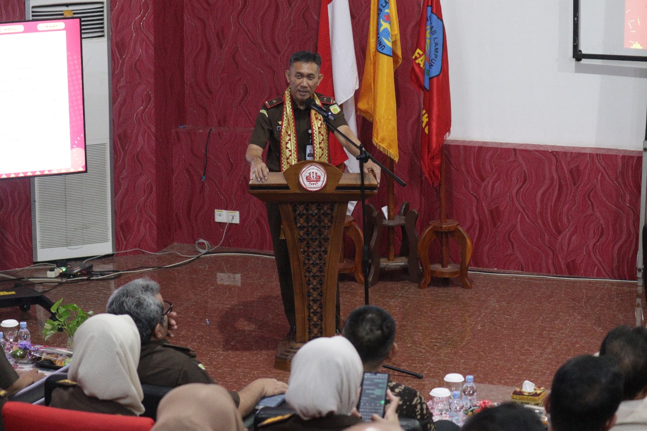 Kejaksaan Tinggi Lampung – Kepala Kejaksaan Tinggi Lampung Danang Suryo Wibowo S.H., LL.M., pada hari Kamis tanggal 19 Juni 2025, Pukul 09.00 WIB bertempat di Ruang Auditorium Prof.Abdulkadir, memberikan kuliah umum didepan 200 Mahasiswa Fakultas Hukum Universitas Lampung.