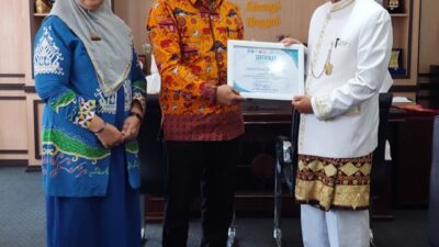 Sebagai bentuk apresiasi atas kontribusi beliau, sertifikat penguji praktisi diserahkan langsung oleh Dr. Albet Maydiantoro, M.Pd. Dekan FKIP Unila.