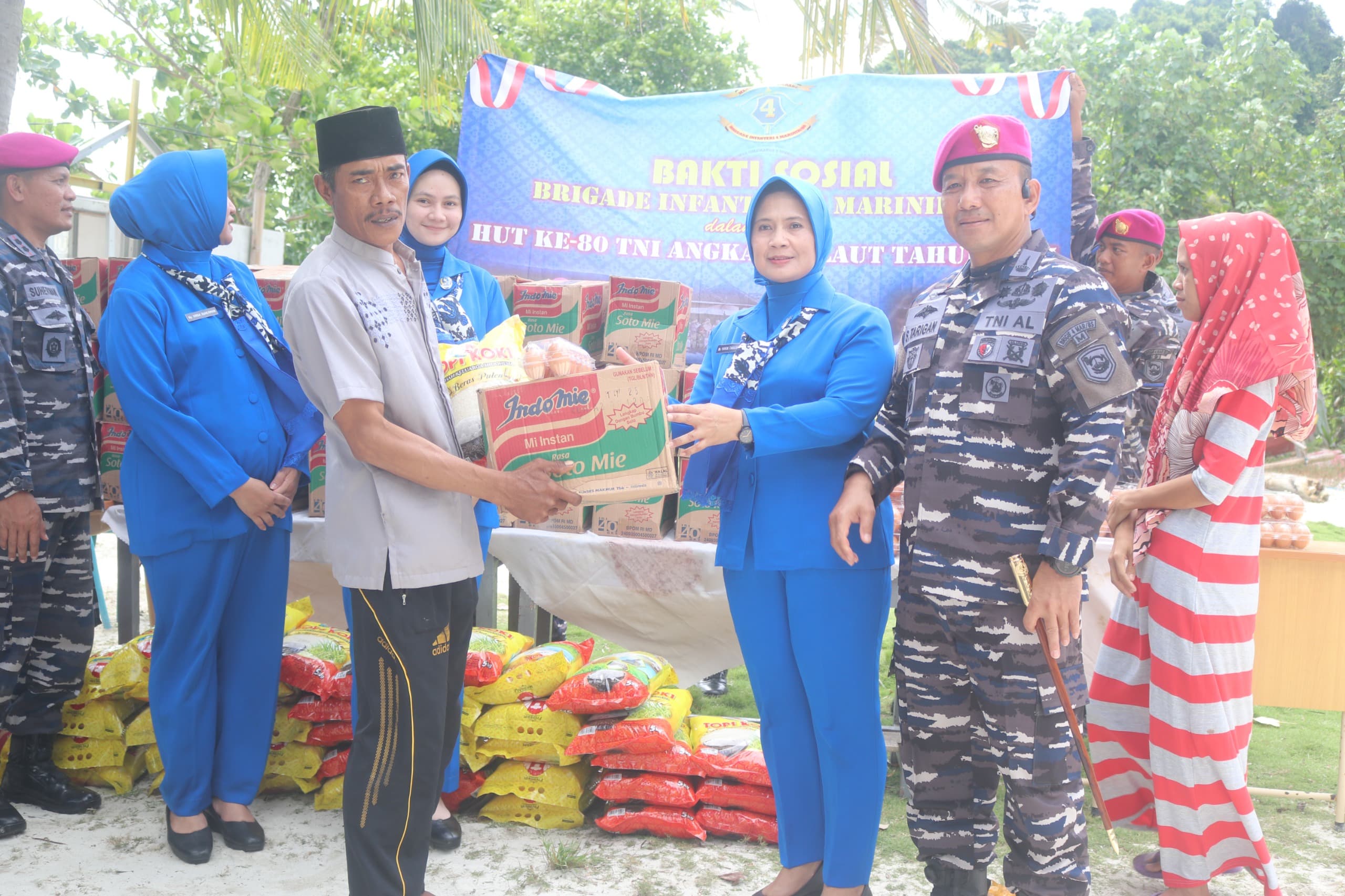 TNI-AL, Korps Marinir, Brigif 4 Mar/BS (Pesawaran) Dalam rangka memperingati Hari Ulang Tahun ke-80 Tentara Nasional Indonesia Angkatan Laut (TNI AL), Komandan Brigade Infanteri (Danbrigif) 4 Marinir/BS Kolonel Marinir Supriadi Tarigan, S.I.P., M.M., didampingi Ketua Cabang 7 PG Kormar Ny. Yayuk Supriadi Tarigan beserta jajarannya melaksanakan kegiatan bakti sosial (baksos) dengan mengunjungi beberapa tempat di wilayah sekitar. Jum’at (12/09/2025).